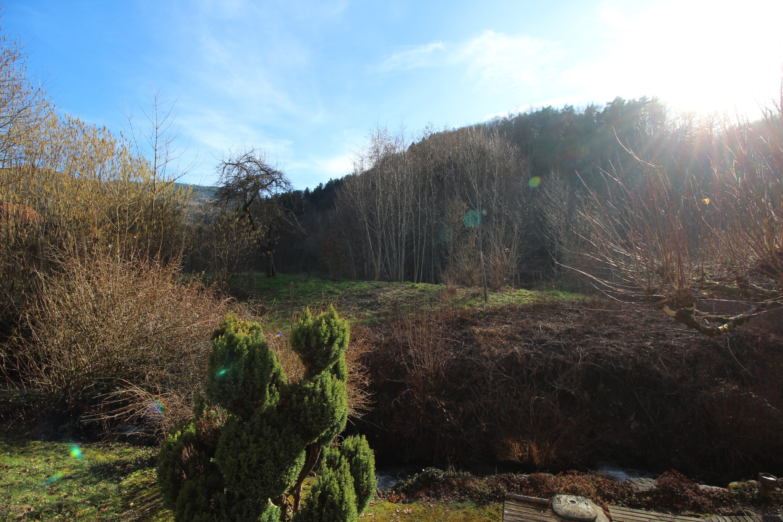 La maison est entourée d’un environnement naturel privilégié, avec montagnes, forêts et un ruisseau bordant le terrain. Le jardin offre de nombreuses possibilités : création d’un potager, aménagement d’un espace détente ou activités en plein air. Vous pourrez également apprécier un charmant bassin d’ornement et une terrasse ombragée, idéale pour se relaxer sous le tilleul majestueux.